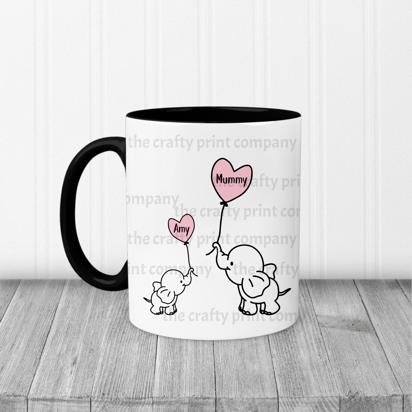 Black, Light blue, Red and Pink or you can choose just a plain white mug. 11oz