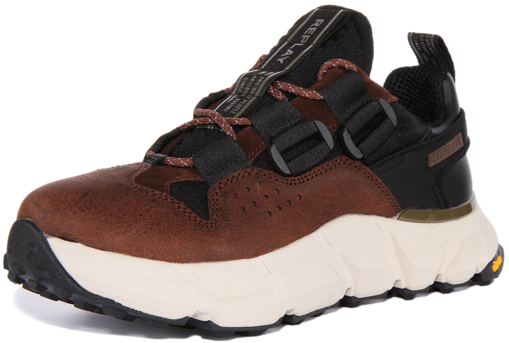 Made in collaboration with Vibram with particular lacing and round laces, these leather sneakers are perfect for all day, everyday wear. It features polyester lining for breathability, cushioned midsole for all day comfort, while the 100% elastodiene sole ensures maximum grip and traction in every step. Finished with Replay branding, these sneakers are lightweight and comfortable.