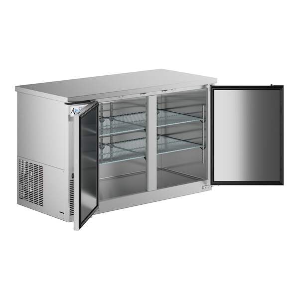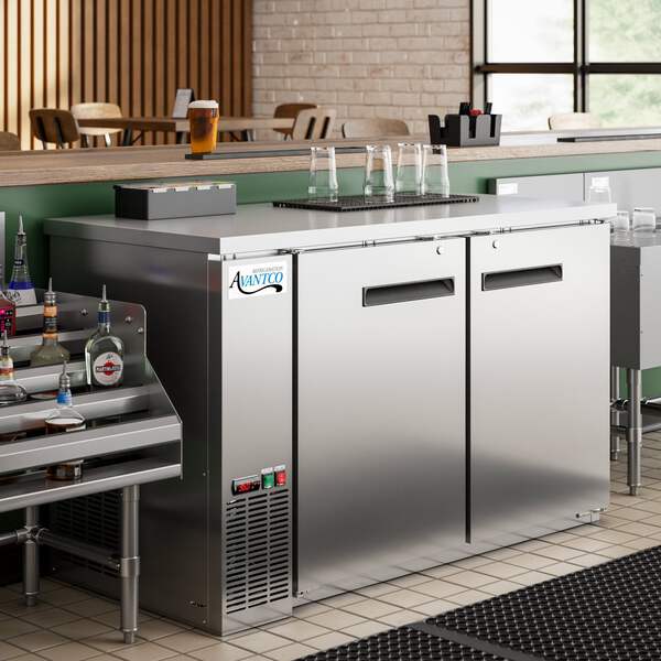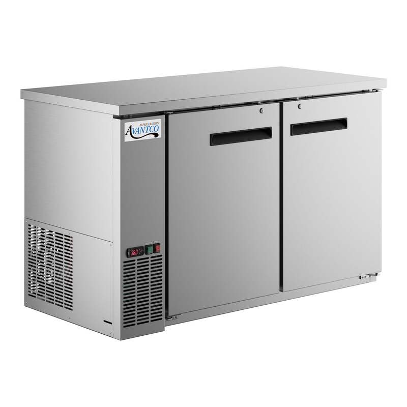 Optimize the space behind your bar by adding refrigerated storage with this Avantco UBB-378-HC-S 79" 59" counter height back bar refrigerator! Providing 19.4 cu. ft. of interior storage space, the unit fits up to (2) 1/2 kegs and houses four epoxy-coated shelves that each accommodate up to 88 lb. The interior is illuminated by bright LED lighting for optimal product visibility. The plastic-coated steel shelves are perfect for storing and organizing drinks for your bar service, from bottles of ale to bottles of cider.