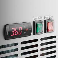 The interior, made of strong 304 type stainless steel, is accessible through three solid doors. For overall durability, the unit's exterior is made with black coated steel and is topped with a type 304 stainless steel surface. This back bar refrigerator ensures optimal performance by operating with a 3/7 hp refrigeration system that circulates R-290 hydrocarbon refrigerant to maintain temperatures from 33-41 degrees Fahrenheit. R-290 refrigerant has an ozone depletion potential (ODP) of 0 and a global warming potential (GWP) of 3, making it an energy-efficient choice for your business. The foamed-in-place polyurethane insulation provides the refrigerator with additional structural integrity and ensures that all beverages held in the unit remain at cool temperatures and are ready for immediate service to customers! The unit requires a 115V electrical connection for operation and even comes with adjustable feet for simple, convenient leveling.