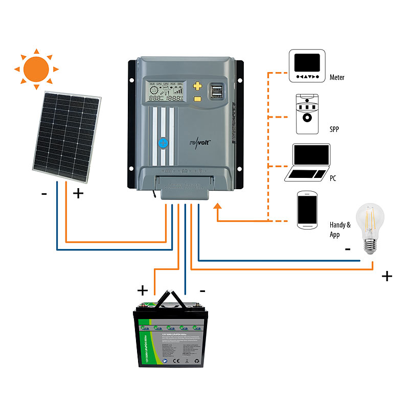 Sicher wie nie: Dank Kontrollsystem sind Ihre Akkus zuverlässig geschützt vor Kurzschluss, falscher Verkabelung und Überladung. Der Regler achtet auf den Ladestand und schützt vor Tiefentladung. Das erhöht natürlich auch die Lebensdauer Ihrer Batterien deutlich.