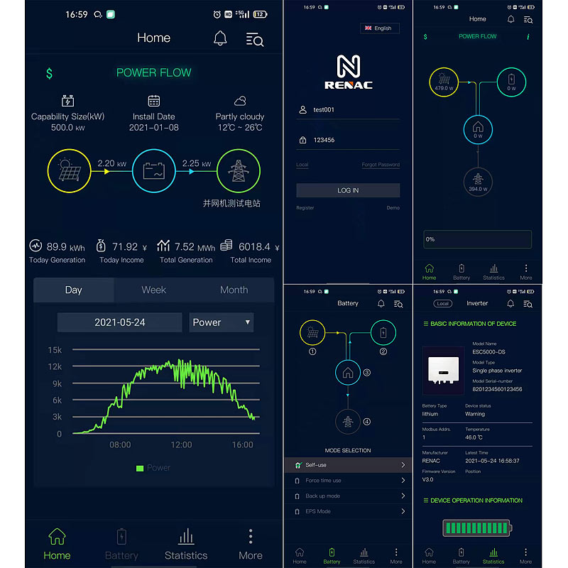 - Kostenlose App "Renac SEC" für iOS und Android: zur weltweiten Steuerung und Daten-Einsicht