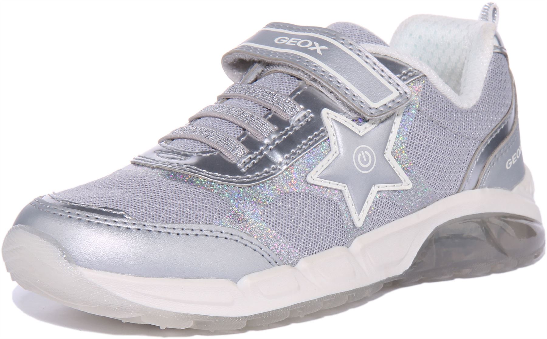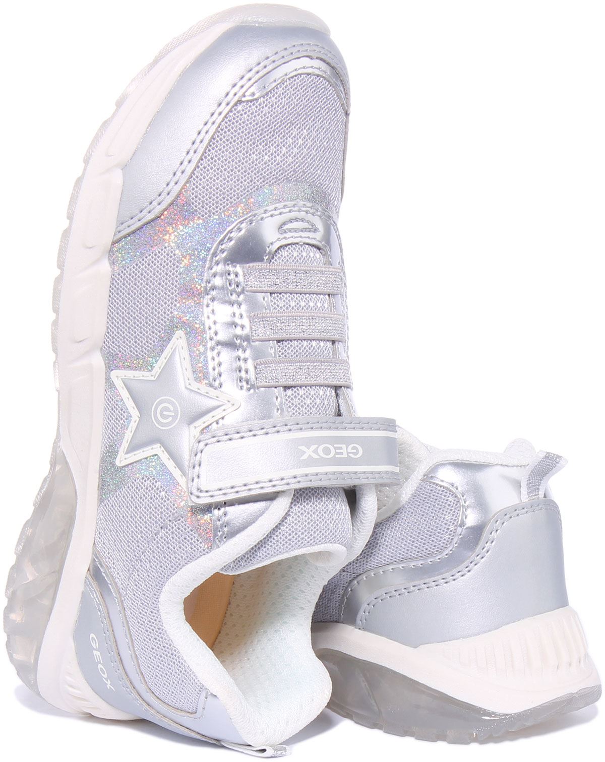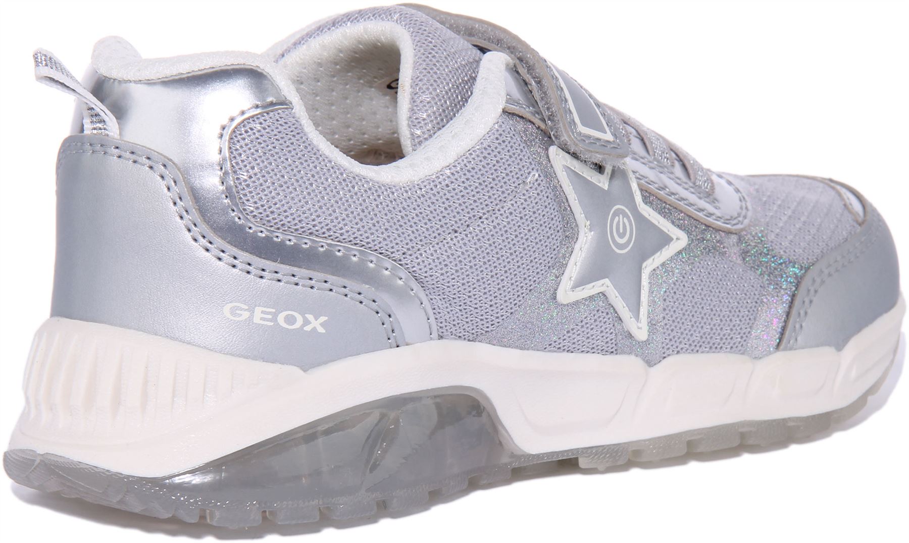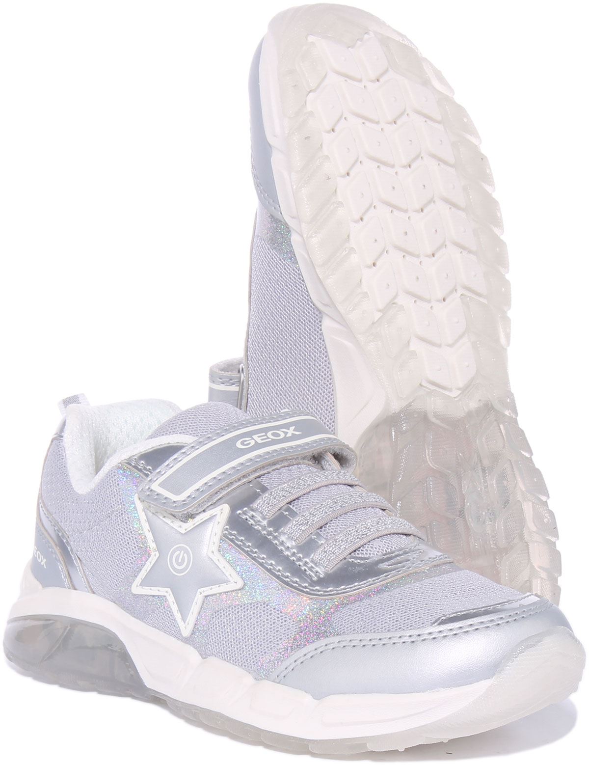 Guaranteed to revive any look, Spaziale is the ultimate way to add a special touch to an outfit and is made for kids who are always on the move. This sneaker is made from mesh with synthetic leather overlays and has cute lights built into the outsole for a head turning look. It has single riptape closure with elastic laces, while Geox patented outsole ensures breathability. Perfect to be worn from morning to night.