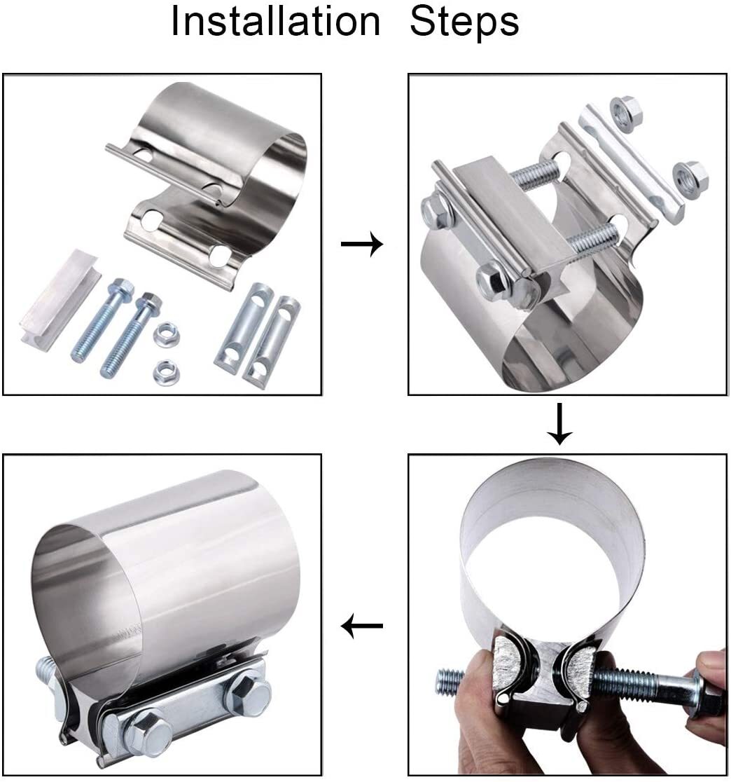 7.FUNCTION : Great solution for connecting 2 pipes of the same diameter! 360-degree clamping of the exhaust tubing to prevent exhaust leakage and noise