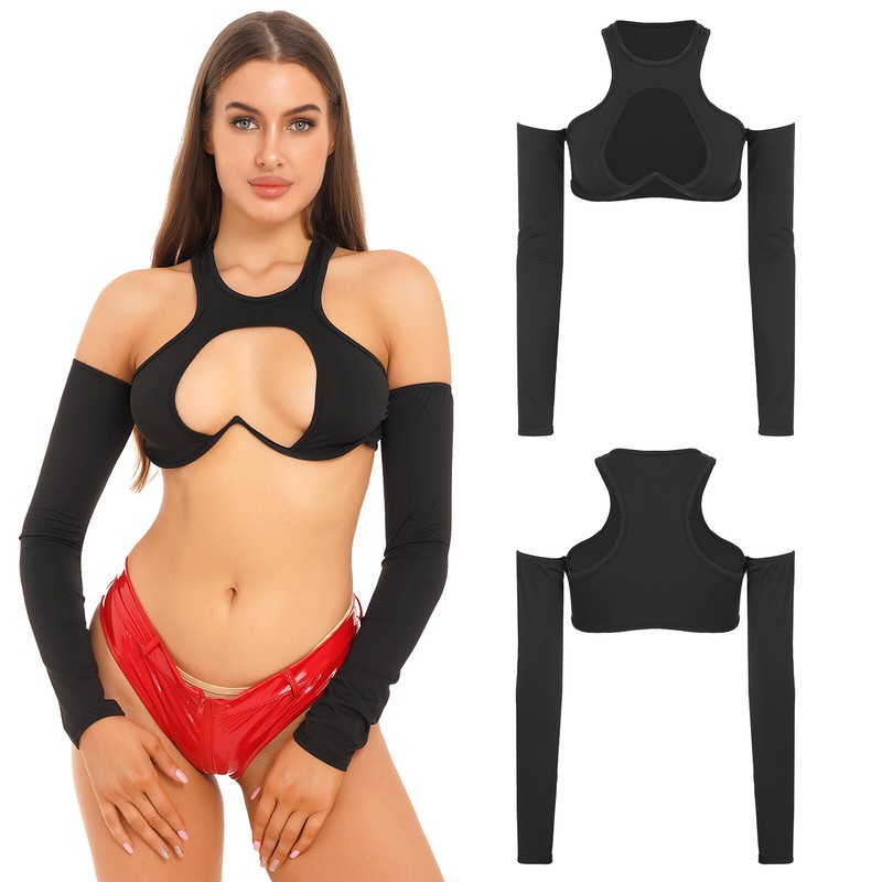 Women See-through Mesh Underwire Crop Top Nightwear Long Sleeve Open Front Sheer T-shirt Tops.