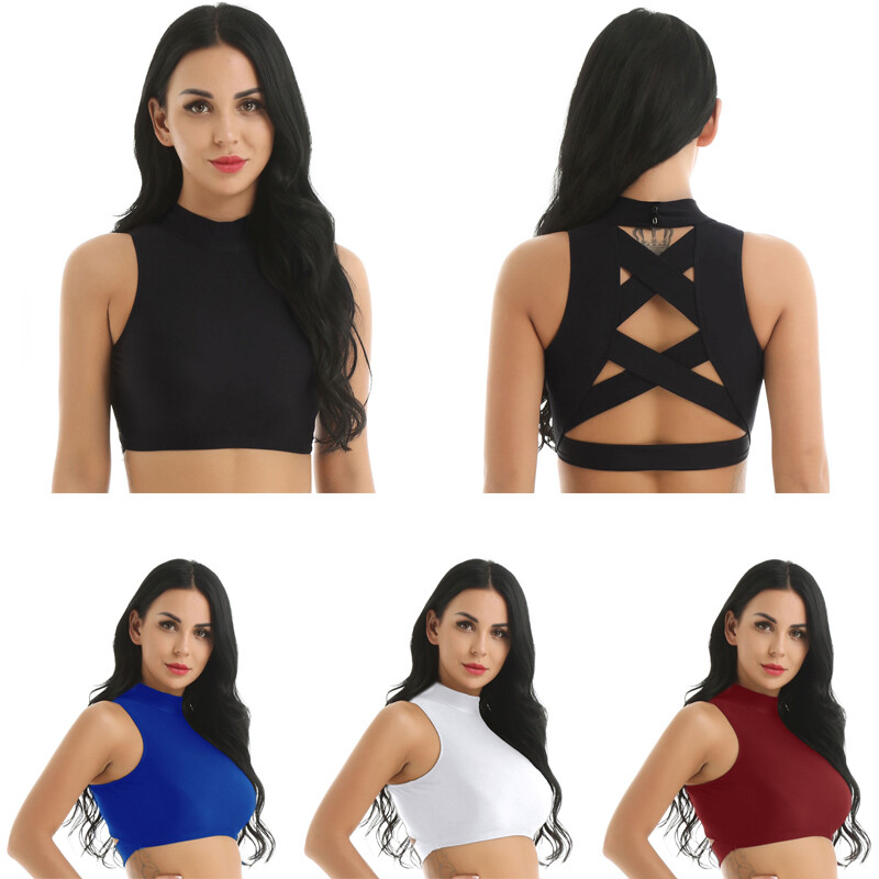 Women adult cami bra vest crop top, slim fit and see through design.