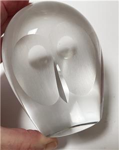 Presenting a stunning vintage crystal owl paperweight / figurine designed by the legendary Folke Walving for the quality Swedish makers Maleros.