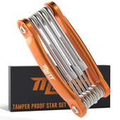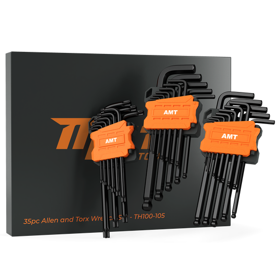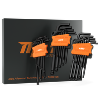 35 Piece Full-Range Hex Key Set: SAE: 0.05, 1/16, 5/64, 3/32, 7/64, 1/8, 9/64, 5/32, 3/16, 7/32, 1/4, 5/16, 3/8. Metric: 1.5, 2, 2.5, 3, 4, 4.5, 5, 5.5, 6, 7mm, 8, 9, 10. Tamper Resistant Star: T10, T15, T20, T25, T27, T30, T40, T45, T50.