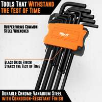 Built to Last with Pro Precision: Made from hardened chrome vanadium steel with black oxide coating, this hex wrenches set resists corrosion and outperforms standard alloy options in any jobsite condition.