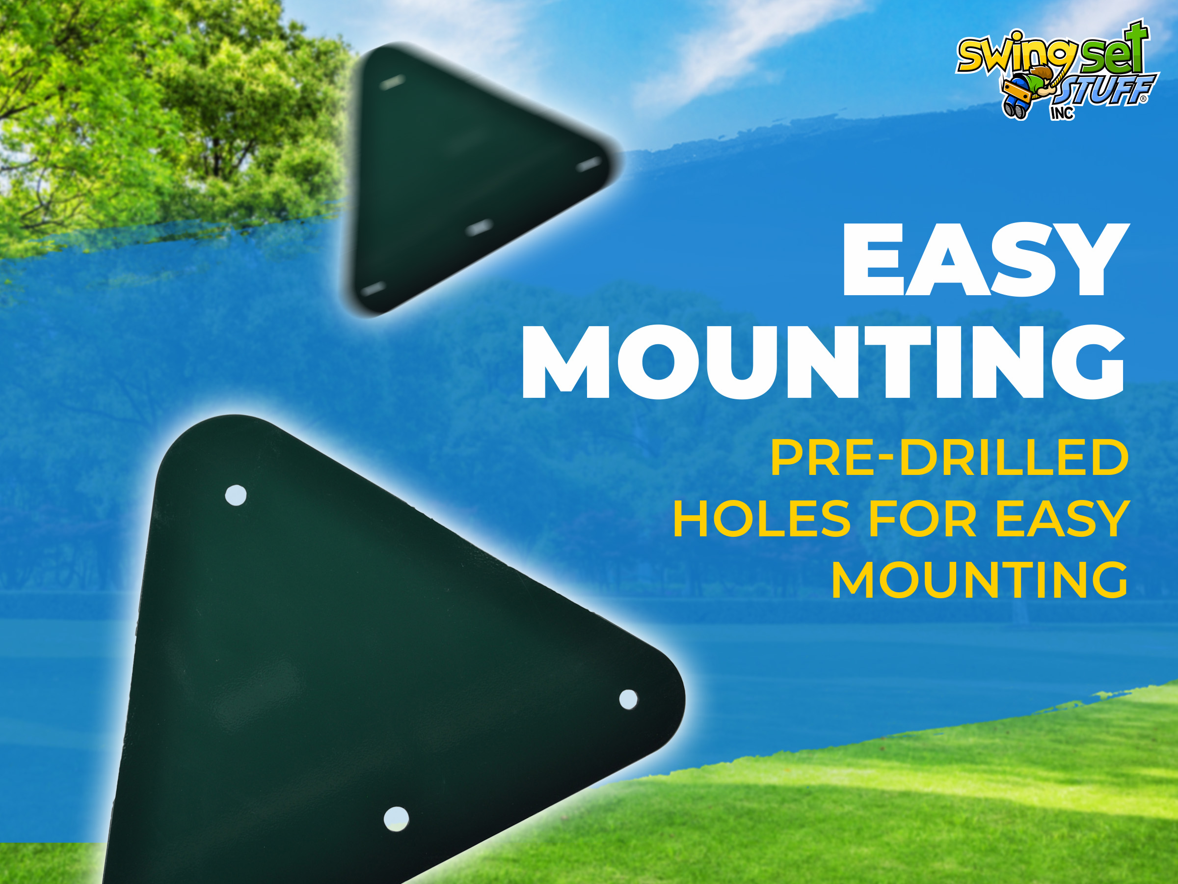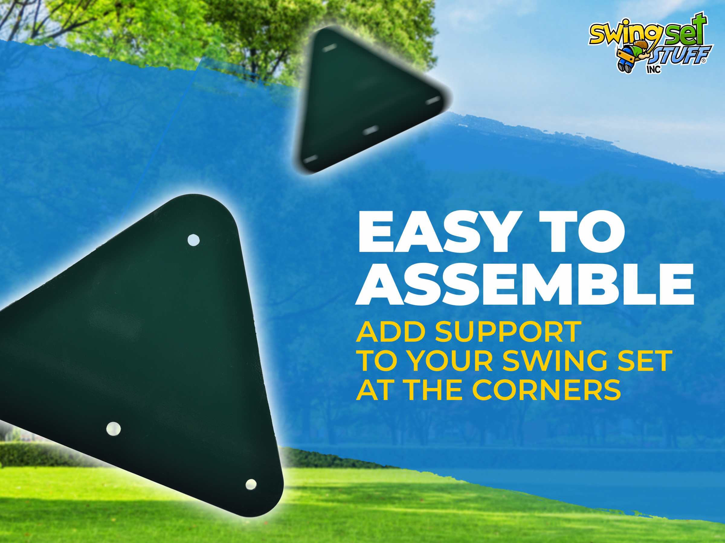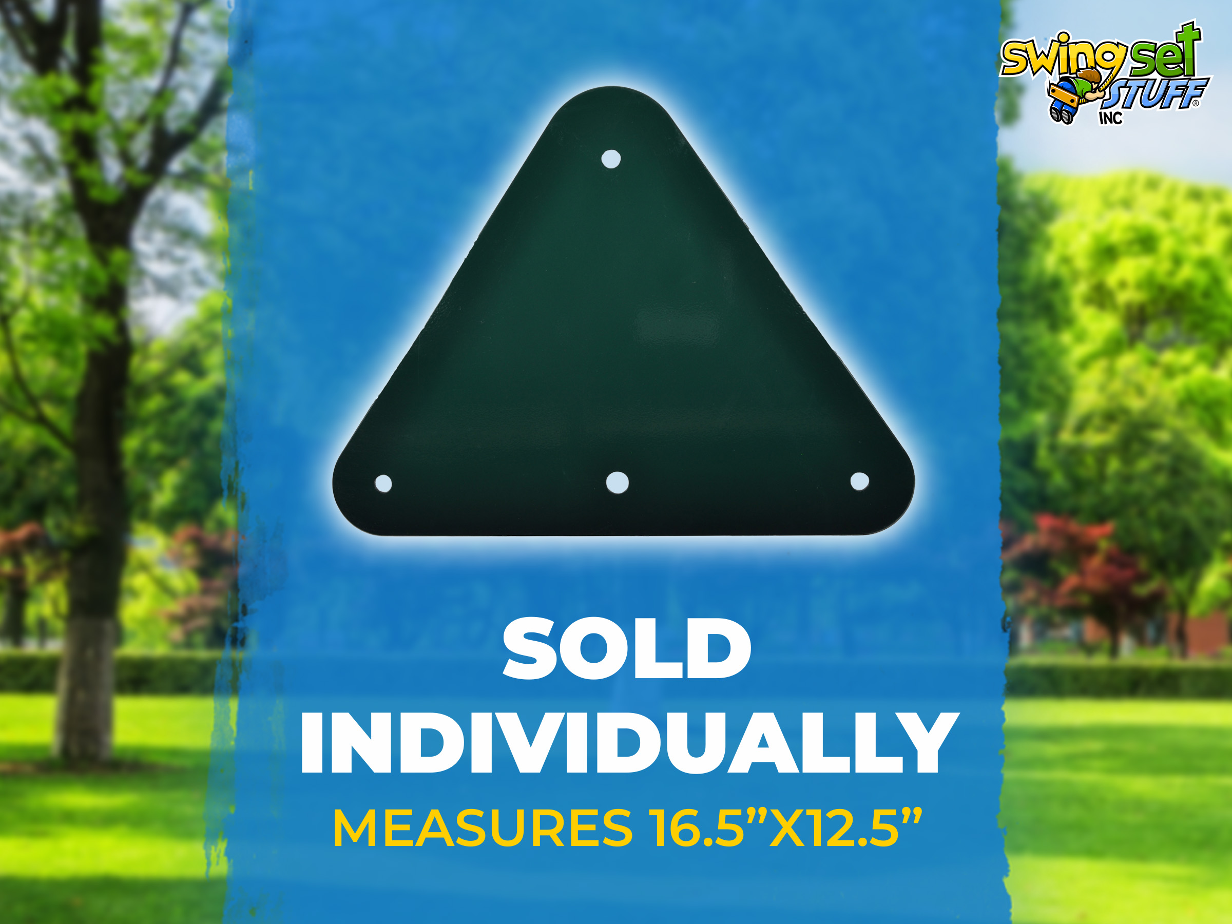 This large triangle steel brace measures 16.5” x 12.5” and is powder coated green. It comes with pre-drilled holes for easier mounting. This is for residential use only.