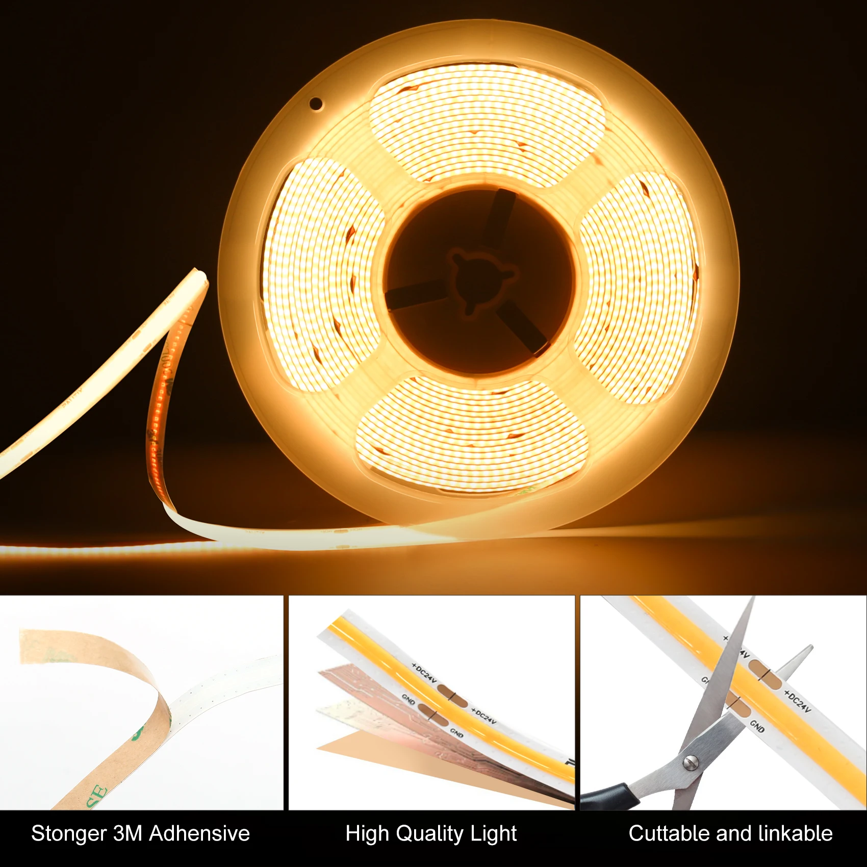 10M COB LED Strip Light DC 12V/24V 312LEDs Dimmable High Density Flexible Tape Ribbon Lights Warm Nature Cool White