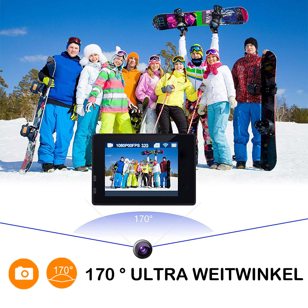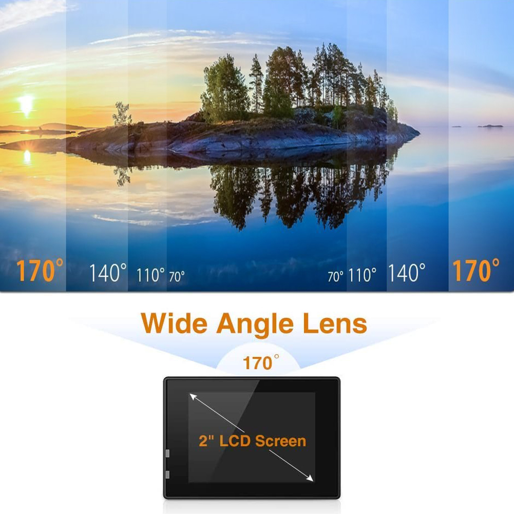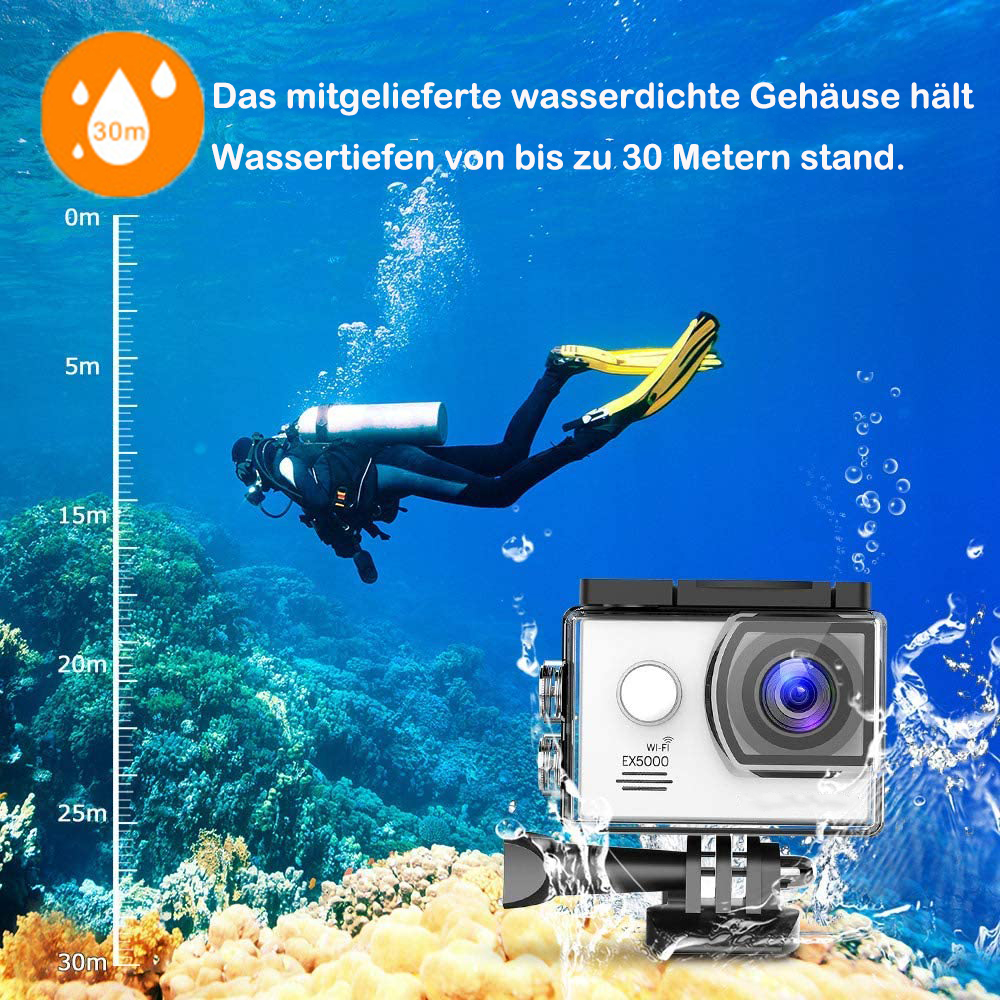 DBPOWER EX5000 Action Camera equipped with FHD 1080p 30pfs 14MP to ensures a most real time record for your actions sports such as diving, biking, Skiing or climbing etc. 2 rechargeable batteries included: Extend the play time from 80 minutes to 140 minutes never afraid that the power will go off while watching your favorite movie. Ultra 170 degree Wide Angle Glass Fisheye Lens: It allows you to capture more of yourself and your surroundings, ultra captivating footage of every adventure. Built In WIFI: Just download the App on your phone or tablet and connect with the WIFI name of the camera. Then you can operate or review the images or videos via Android or iOS device. Durable and Waterproof: The Water Resistant Case provides water protection up to 30m depth. The DBPOWER Action Camera is designed to withstand extreme environmental conditions. Wearable and Mountable: Compatible with GoPro Hero/SJCAM Mounts The DBPOWER Action Camera helps capture a wide variety of activities. Application: It can be used for extreme sports, outdoor sports, security devices, recording your car driving, etc. What You Get: 1x DBPOWER EX5000Action Camera, 1x Waterproof Case, 1x Waterproof Case Clip 1x Multi-Function Clip, 1x Bicycle Mount, 1x Camera Clip 1x Helmet Mount, 3x Belts, 1x Wiper,2x 3M Stickers 1x USB Cable, 1x User Manual, 2x Batteries Note: 1.Micro SD card with at least 16GB class 10 speed rating is required, 32GB is recommended. 2. When use action cam at first time, pls make it fully charged for long lifespan.