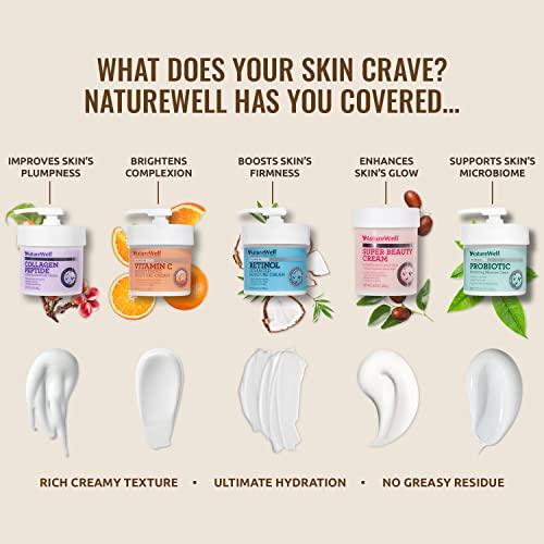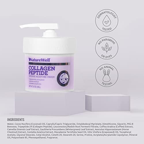 NatureWell Collagen Intense Moisture Cream moisturizes with a potent blend of Collagen and antioxidants. This effective cream immediately hydrates for ultimately smooth skin. Developed with a highly purified collagen peptide, known for renewing skin's natural plumpness. Developed for face and body.