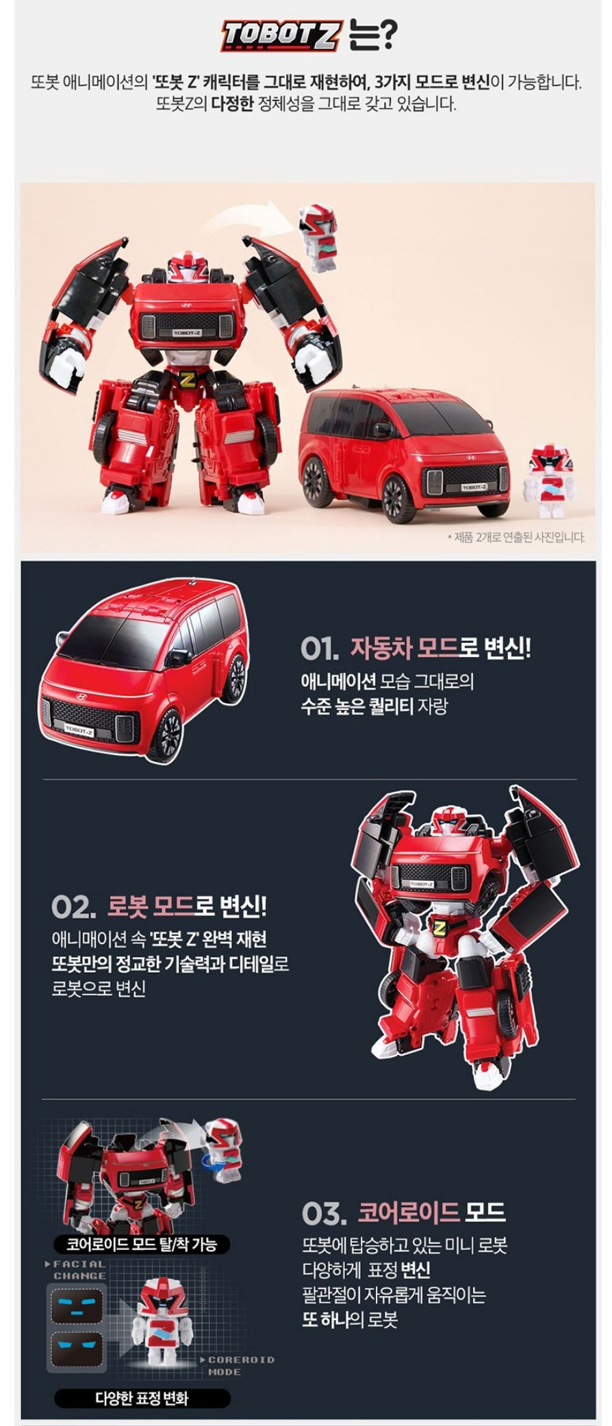 * Features: Robot can be transformed to car (Hyundai Model Staria)