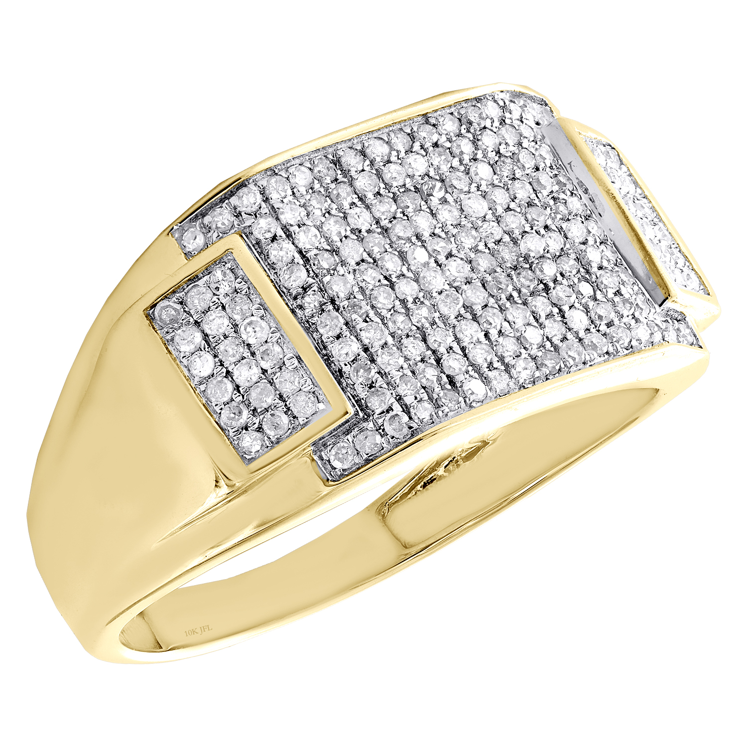 (3.6 gr. of 10K Yellow Gold | Total Carat Weight: 0.50 ct. t.w. of White Diamonds | Width: 12mm | Ring Size: 10 | Clarity: I1 - I2 | Color: H - I | Men's Round Cut Diamond Rectangle Frame Statement Pinky Ring Pave Band)