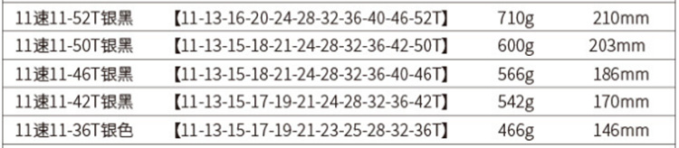 Cassette: 11-speed 11-36/42/46/50/52T