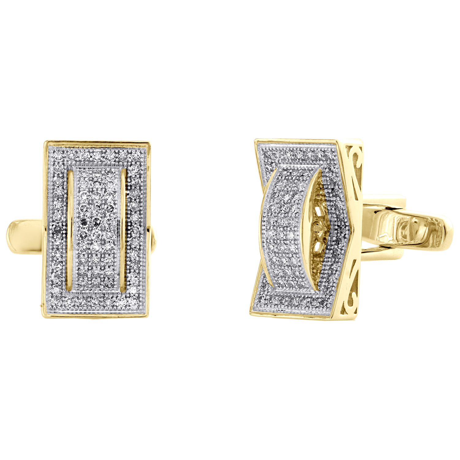 (8.1 gr. of 10K Yellow Gold | Total Carat Weight: 0.75 ct. t.w. of White Diamonds | Dimensions: 16.75mm | Width: 10.25mm | Thickness: 6.25mm | Clarity: SI2 - I1 | Color: G - H | Genuine Round Diamond Rectangle Frame Pave Statement Cufflinks)