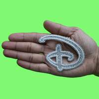 Disney D Logo Patch Glitter Silver Channel Applique Embroidered Iron On