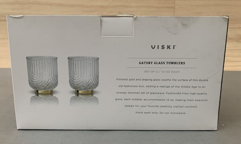 Description: Set of 2 Viski Gatsby Old Fashioned Lowball Glass Tumblers 12oz