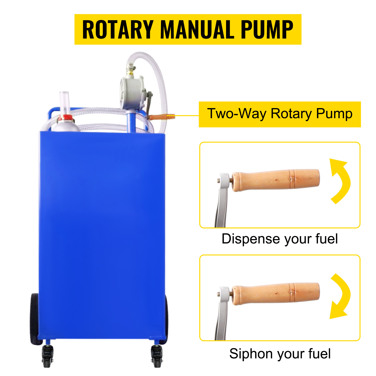 Say goodbye to overfilling tanks with our rotary manual pump. This efficient pump allows you to easily dispense or siphon fuel by simply changing the rotation of the crank handle. No more wasted fuel, as you can effortlessly pull excess gas or diesel back into the caddy.