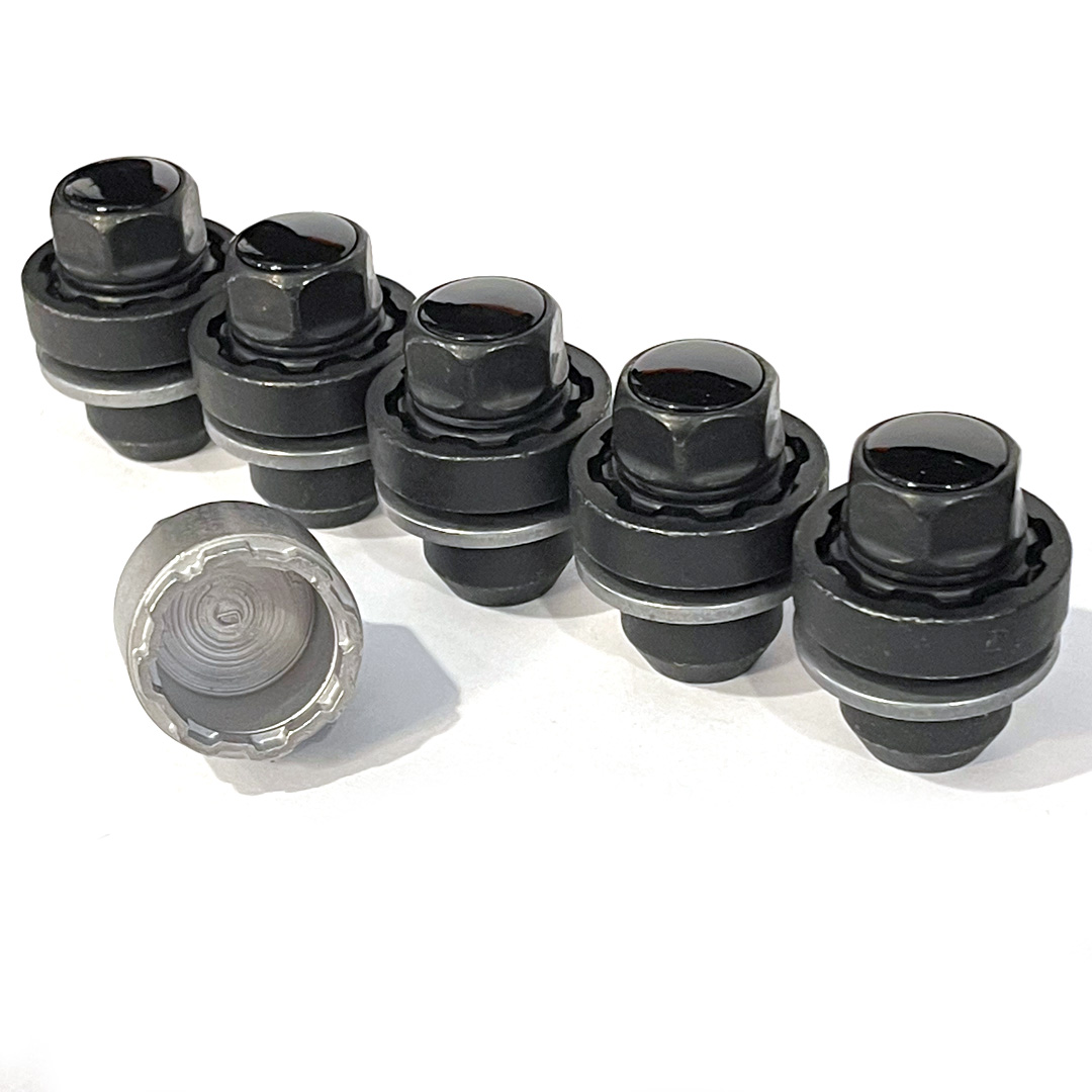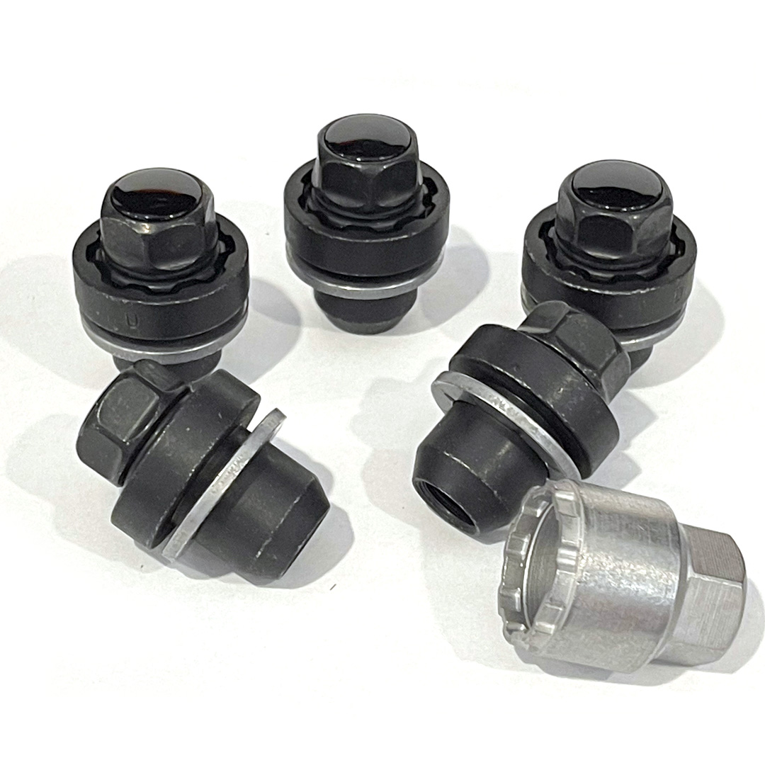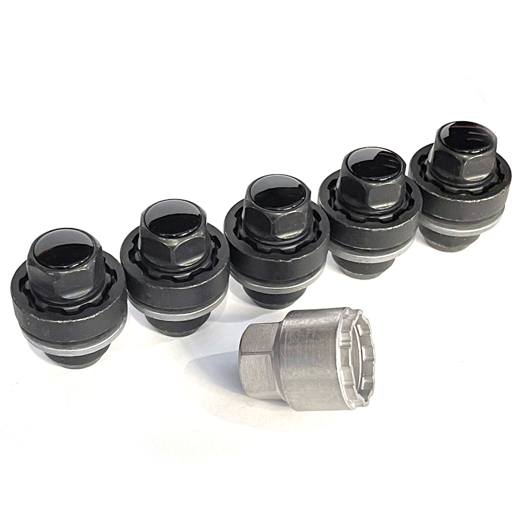 - 1 x Set of 5 Genuine Land Rover locking wheel nuts - Finished in Satin Black with Gloss Black Plastic Inserts.