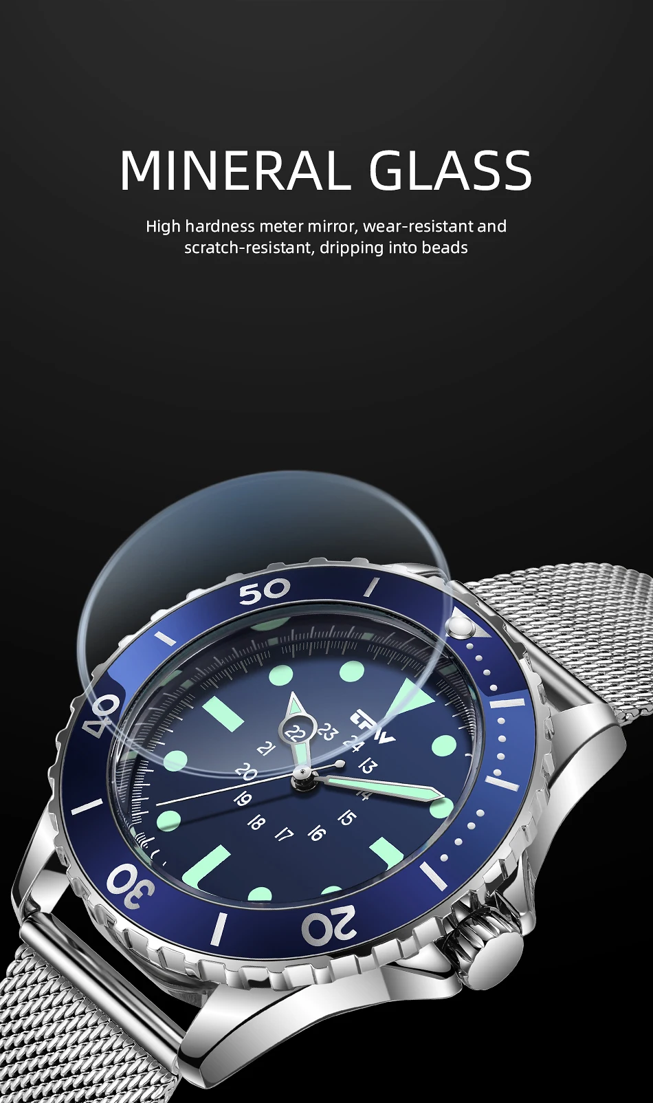 While it looks like a casual watch, the full-sized adds a stylish yet rugged complement to your everyday wear. It features a large, round black/blue-tone metal watch case with a rotating bezel that can check elapsed time and remaining time and insert 24-hour notations, luminous stick hands. It also offers a durable nylon strap.