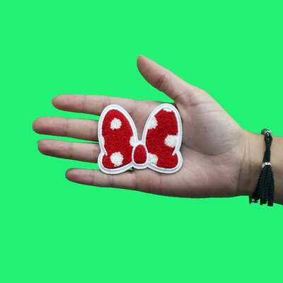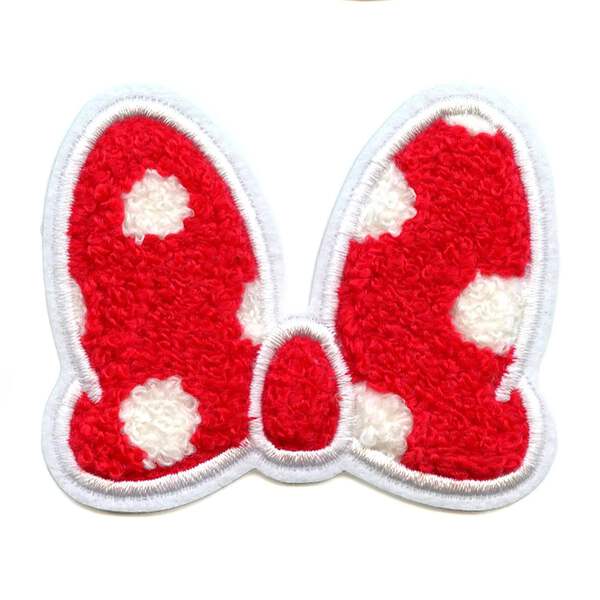 Complete your Mickey Mouse fan wardrobe with this official Minnie Mouse Bow Patch Polka Dot Disney Chenille Iron On. Featuring the classic clubhouse friend, this iconic patch is perfect for adding some Disney magic to your look!