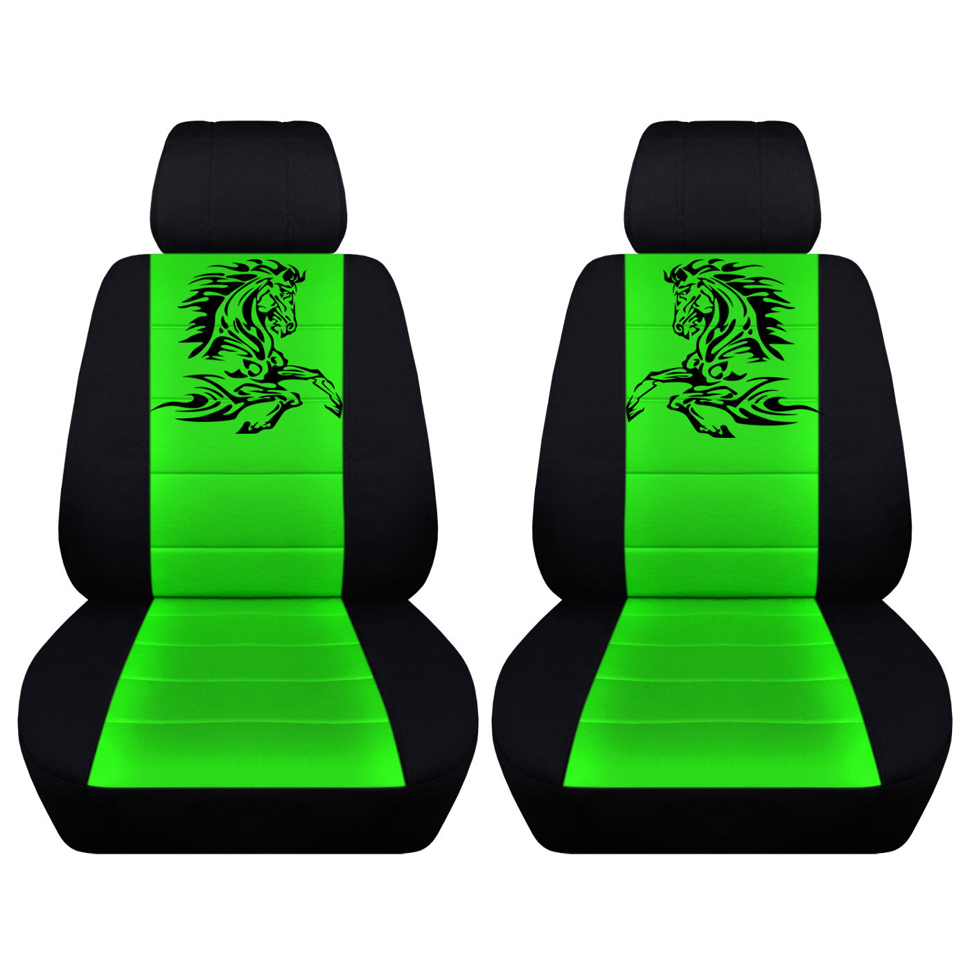 Green Car Seat Covers fits a 2010 to 2014 Ford Mustang -Tribal Horse Seat Covers