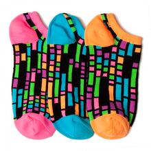 Hello bright and colorful! These liners are somewhat 80s, somewhat 90s and totally now! Bright white, with pops of purple, green, blue and pink - this colorblocking pattern is neon hot! Cotton blend. Imported.