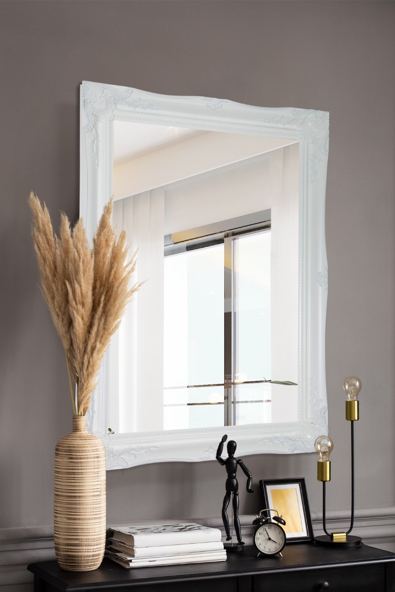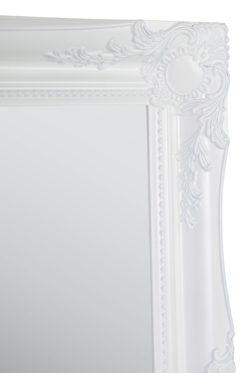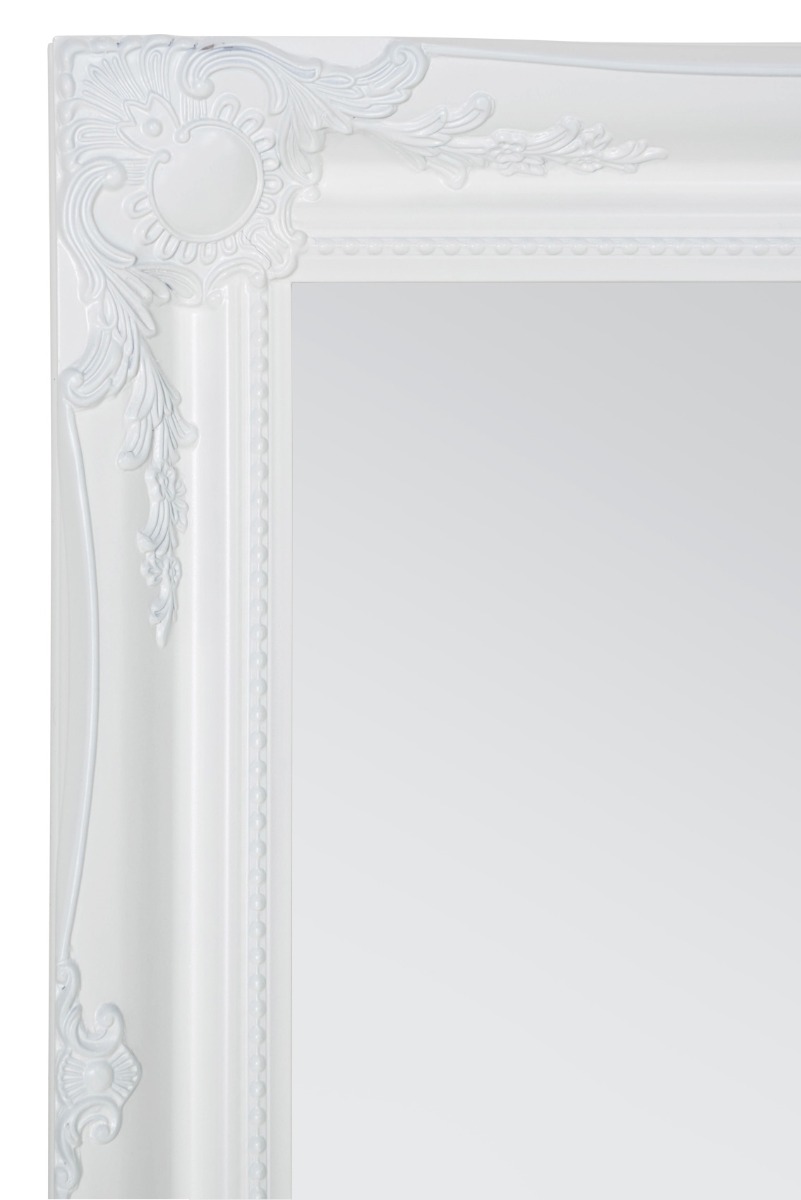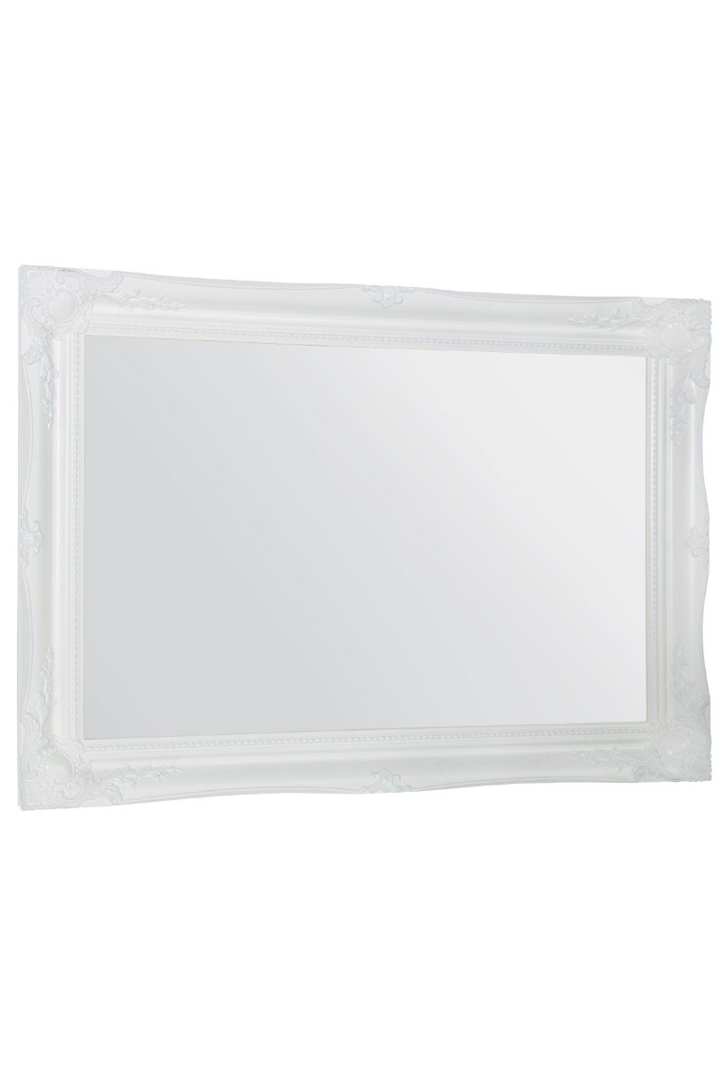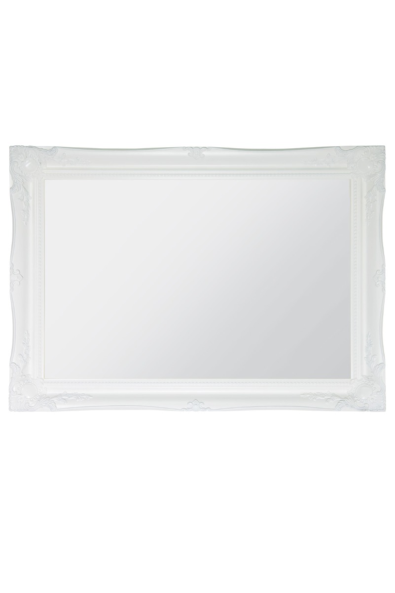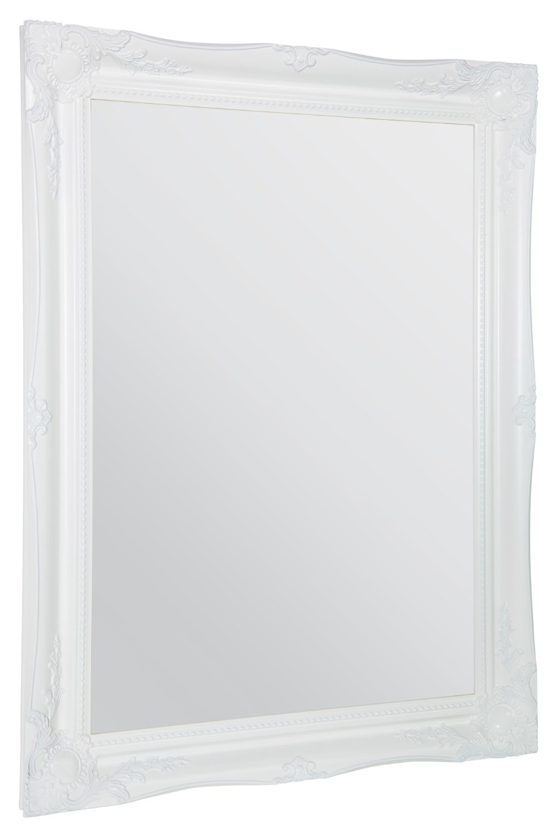 A classic white hand finished French style mirror. The design boasts ornate detailing on all four corners and sides adding a final touch of elegance to any room from bedroom to lounge. This mirror has a glass size of 2ft 6 x 1ft 8 76 x 51cm and an overall size of 2ft 10 x 2ft 86cm x 61cm. Search mfixings for standard heavy duty fixings, swfixings for solid wall fixings, pmfixings for plasterboard fixings and lmfixings for lockable mirror fixings.