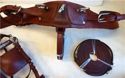 You are bidding on a Nice Quality plain leather Driving Harness !! This is a unique kind of a harness. All pieces Made from quality leather, doubled and stitched (22 lbs). This harness is manufactured with an overcheck for the bridle. This harness is designed to last for years with the proper care.