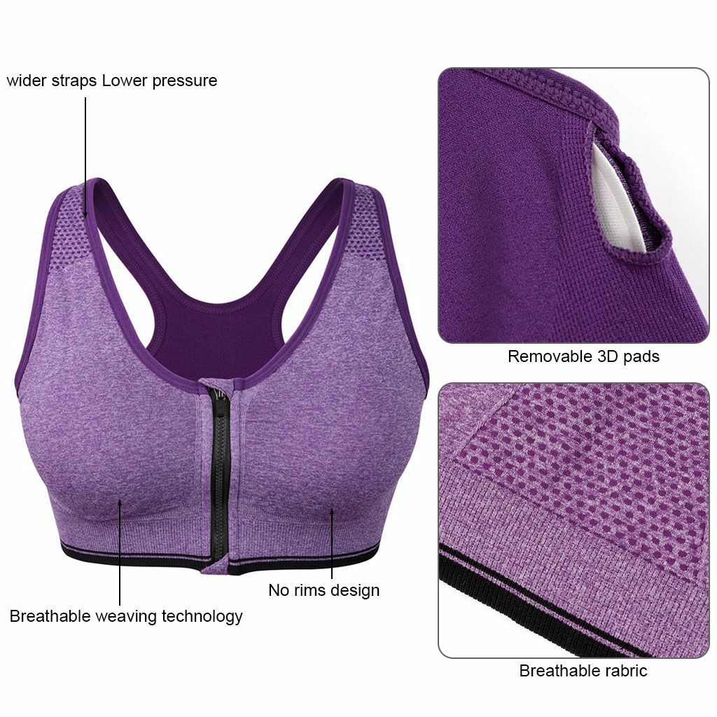 Women Zipper Stretch Sports Bra Running Gym Yoga Padded Fitness Workout Top Tank
