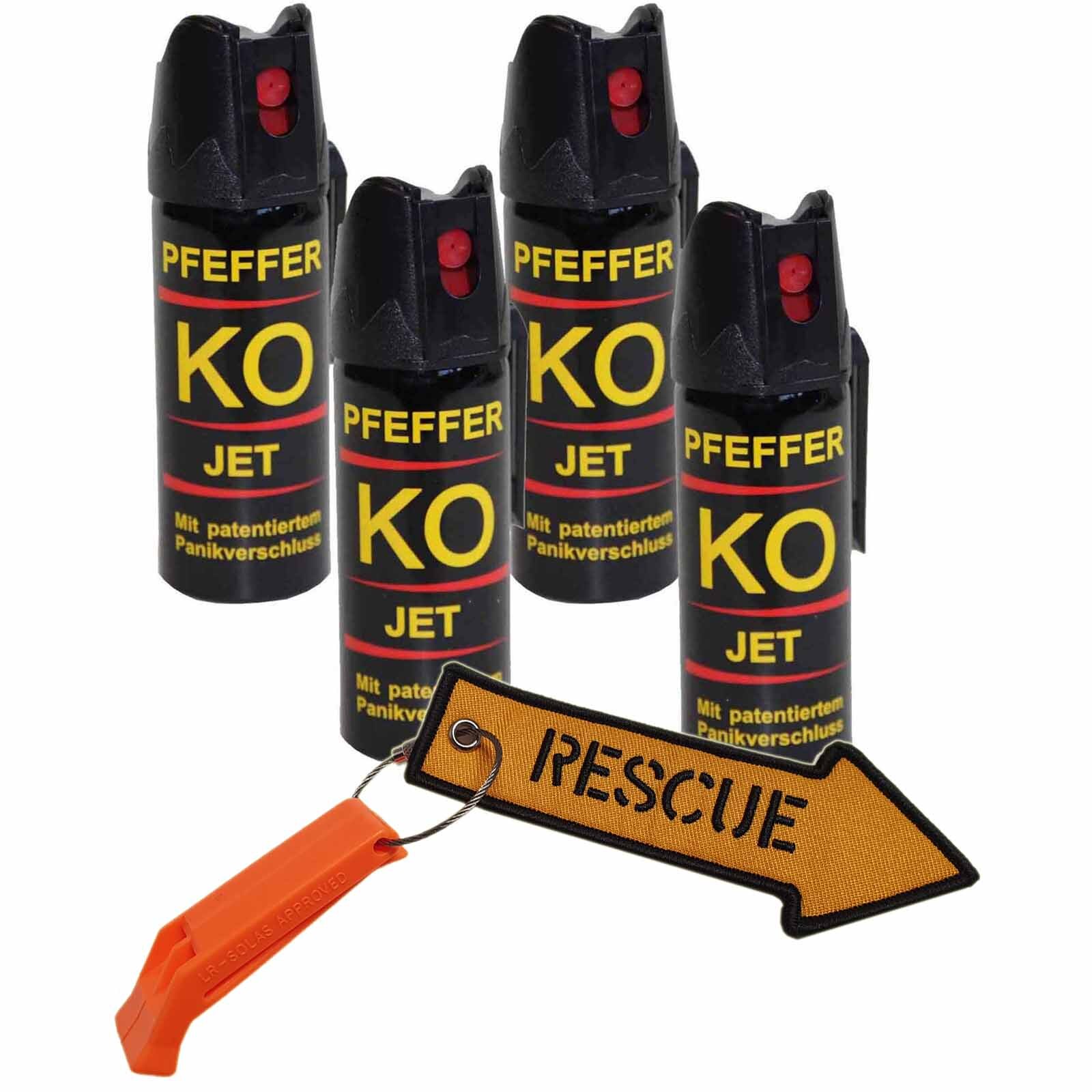 Lieferumfang: 4 (vier) Dosen Pfefferspray - Jet 50 ml + 1 (ein) Key Tool 6 in 1