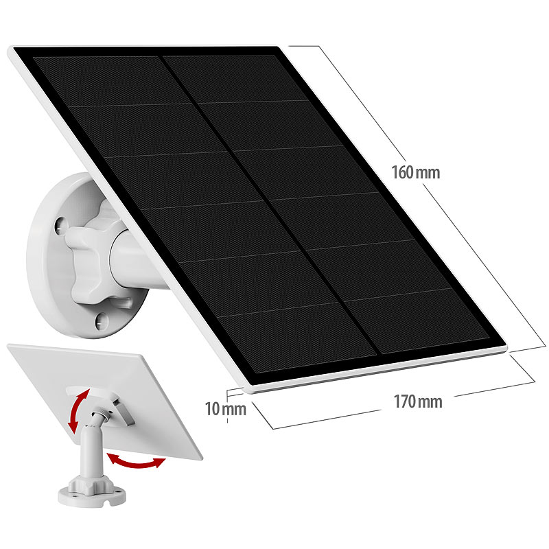Wer kennt das nicht: Im Outdoor-Bereich ist es so eine Sache mit der Stromversorgung. Steckdosen sind selten in praktischer Nähe. Machen Sie sich das Laden Ihrer Akku-Überwachungskamera jetzt leicht. Mit Ihrem neuen Solarpanel speziell für akkubetriebene Kameras sind Sie unabhängig von der Steckdose und müssen die Kamera auch zum Laden nicht mehr abnehmen!