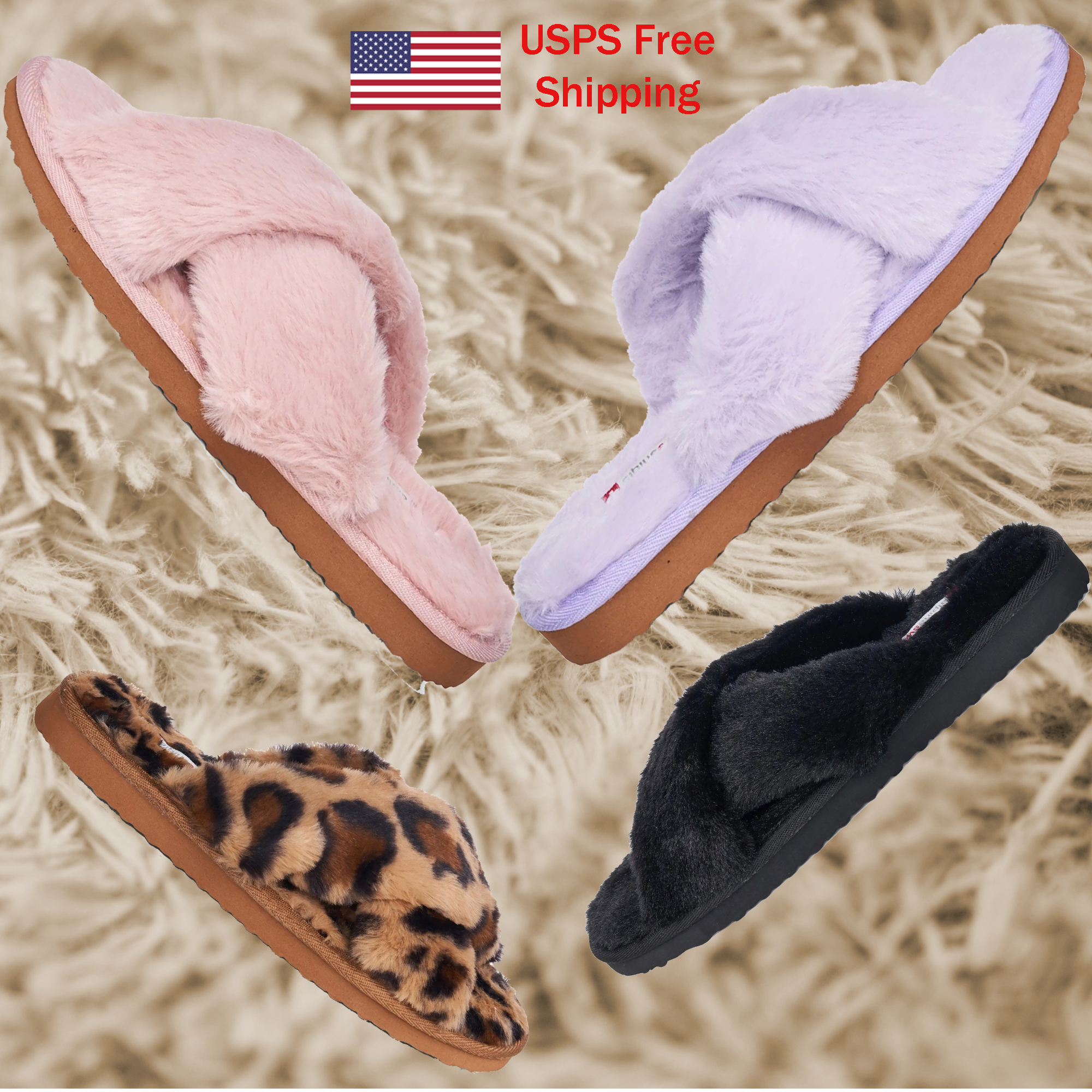 - SMART DESIGN – The Fiona slippers have a cross band soft faux fur upper design to hug your feet and keep them warm. The open toe provides breathability to prevent sweaty feet and keep you cozy. The easy slip-on entry allows you to quickly slide your feet into comfort when you want to relax.