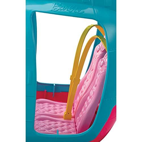 Let imaginations hop into the Barbie Helicopter and take off to all parts of the world -this colorful chopper inspires stories to take flight. Designed in bright pink and blue, it's silvery rotors spin with a push. Pick up and "fly" through the air to take in the sights below. Inside is room for two dolls (sold separately) -silvery "controls" let kids role-play piloting fun, and seat belts keep the passengers safe inside. Inspired by Barbie Dreamhouse Adventures, fans can peek into the everyday life of Barbie as she embarks on exciting adventures with her family and friends or make up their own stories as they explore the world! Collect other Barbie travel dolls and toys to expand the playtime possibilities (each sold separately, subject to availability). Includes helicopter; doll not included. Colors and decorations may vary.