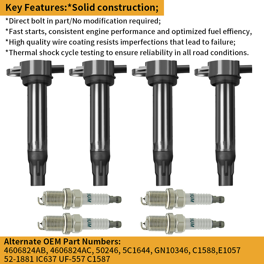 4PCS Ignition Coils + 4PCS Spark Plugs