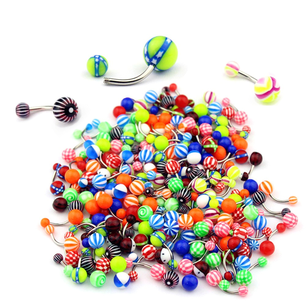 10/20/30pc Multi Color Belly Button Acrylic Navel Ring Steel Barbell 8-16mm Bar