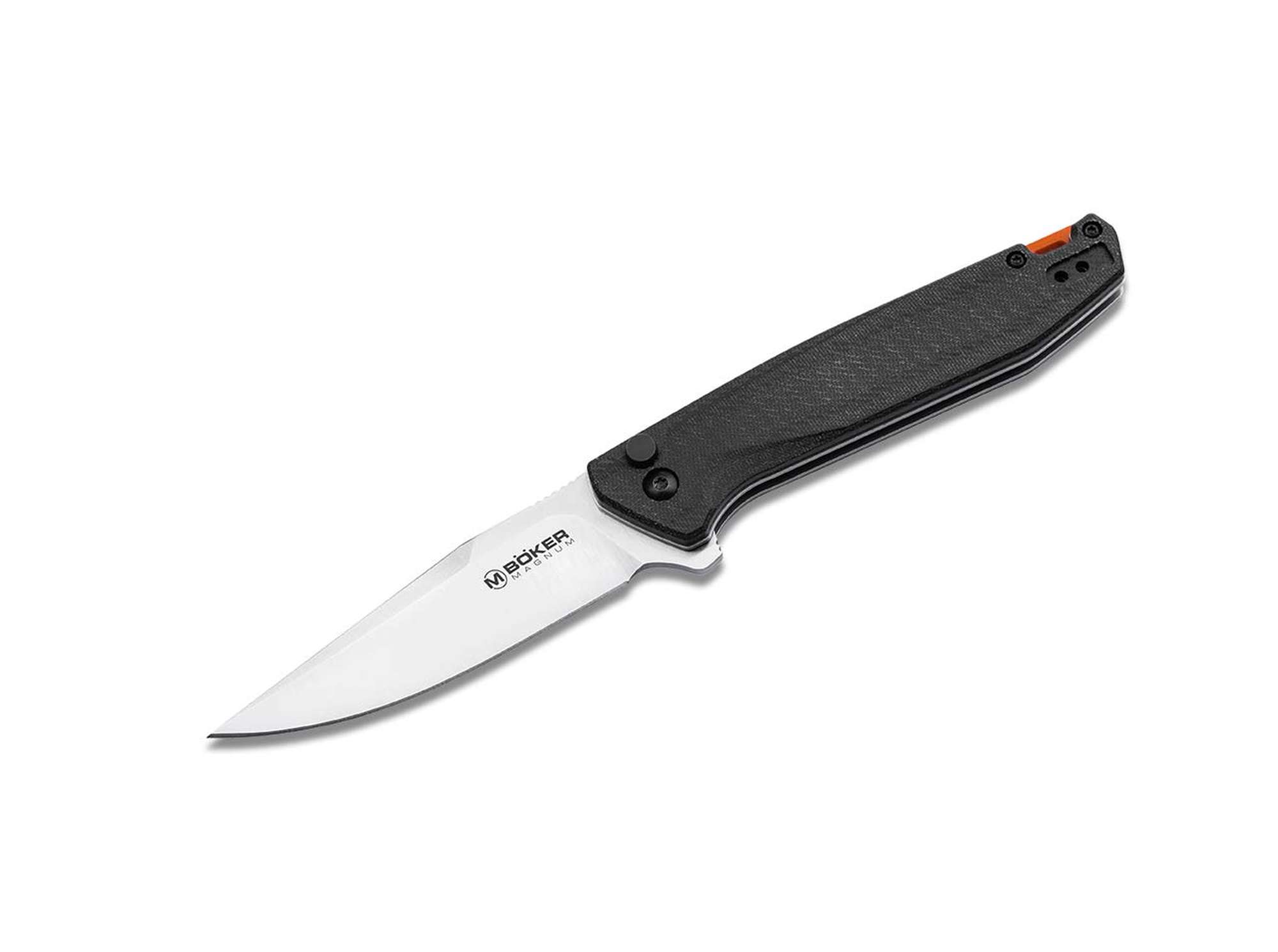 Die Nähe zur Natur gepaart mit urbanem Flair – Diese Eigenschaften machen den Böker Magnum Border Folder zu einem unverzichtbaren Begleiter für Großstadt und Dschungel; Alltag oder dessen Hintertür. Die kräftige Spearpoint-Klinge aus 440A mit feinem Satin-Finish entflieht der Gewohnheit mit kompromissloser Schärfe, intuitiver Flipper Öffnung und dekorativer Fehlschärfe am Klingenrücken für höchste Flexibilität, ganz gleich ob im Grünen oder im grauen Alltagstrott. Ohne Umwege navigiert der aufgeräumte, konturierte Griff mit Button Lock und fein texturierten Griffschalen aus schwarzem Micarta die Hand an das Taschenmesser und sorgt für ein Plus an Haptik fernab jeder Hektik. Der orangefarbene Backspacer aus G10 strahlt die nötige Wärme aus, erhöht die Stabilität und dient zusätzlich als Fangriemenöse. Mit umsetzbarem Tip-Up Clip, der eine Deep-Carry-Trageweise zum diskreten Verstauen des Messers in der Hosentasche ermöglicht.