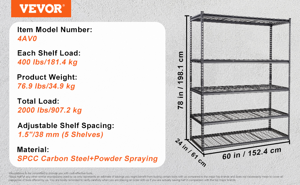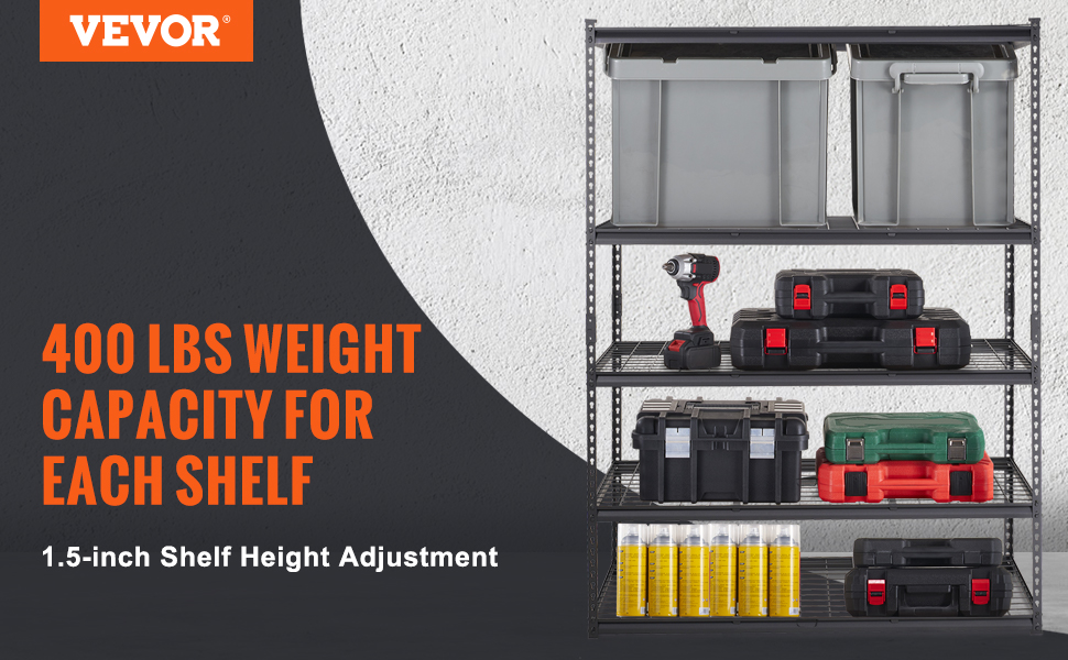 Load Up Your Life: Transform your cluttered garage into a neat and organized space with our storage shelving unit. With a 2000 lbs total load capacity, you're free to pile on tools, supplies, or whatever you need in your garage or warehouse. Remember, each shelf is a sturdy 400 lbs carrying companion!