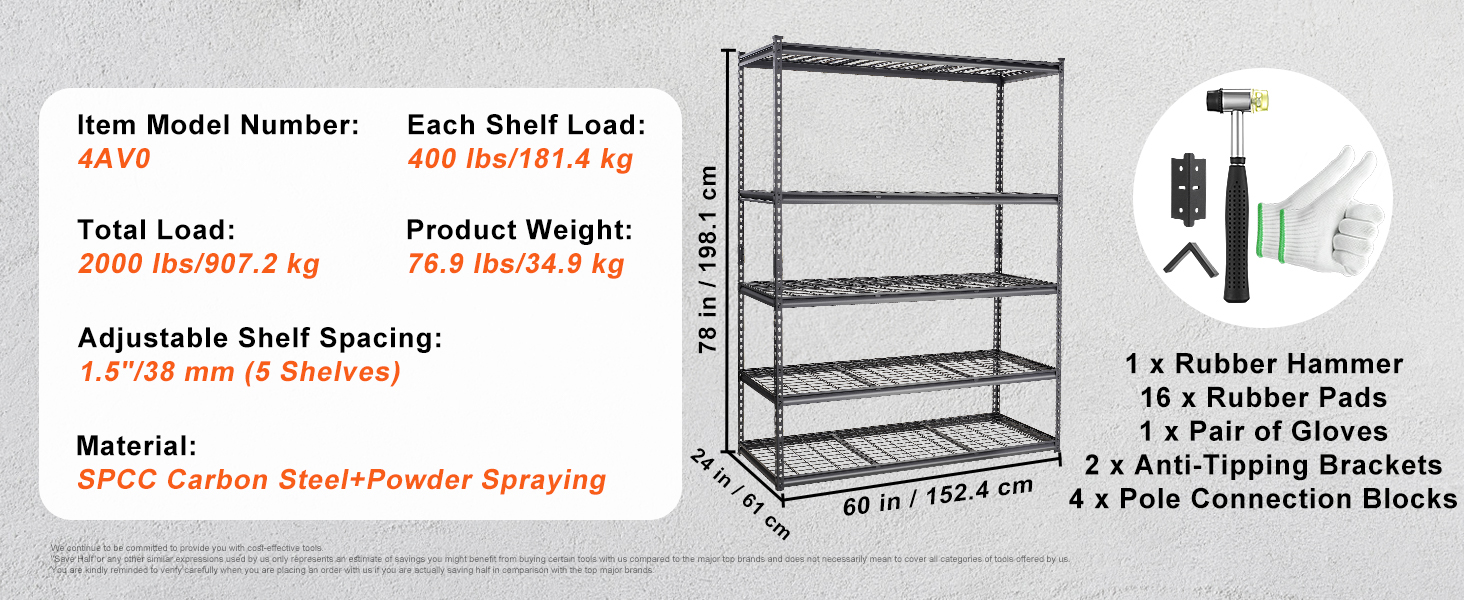 Built to Last: Forget rust and oxidation – we’ve got SPCC carbon steel doing the heavy lifting here. With a quality powder coating to resist rust and scratches, this heavy duty shelf is not just for Christmas, and it's for life! Get ready to stand up to the test of time!