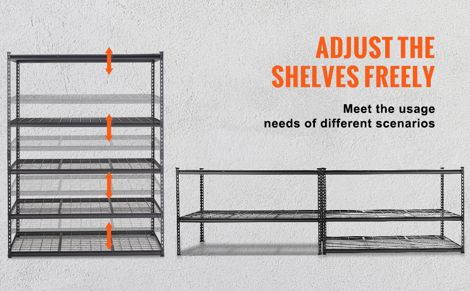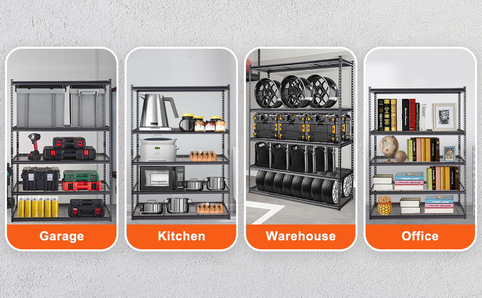 Adjustable Shelf Height: Our heavy duty storage shelves are as flexible as your plans. Need to adjust the height? Just slide, decide, and clip it in place. Whether it’s for the garage, kitchen, or pantry, this metal storage rack plays by your rules.