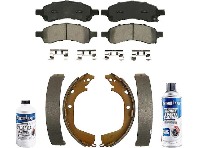 - Kit Includes: (2) Front Ceramic Brake Pad + (2) Rear Brake Shoe + (2) Brake Fluid & Cleaner