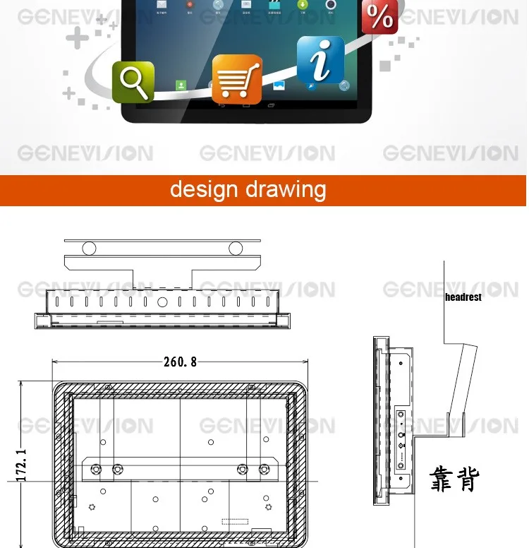 10.1 inch 12V 24V TFT LCD Panel Taxi Advertising screen Android Wifi with 3G car headrest dispaly