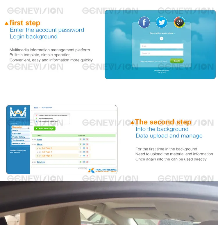 11.Car horn: users can choose according to the actual need sound system; A builtin video and audio is broadcast system, horn rated power for 2 * 5 W; Another: built-in amplifier (can support 300 W power), users can connect directly with the car horn.