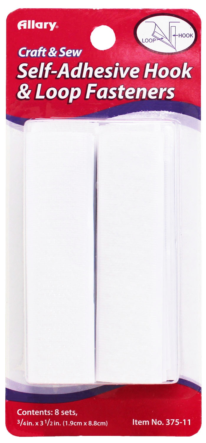 Allary Self-Adhesive Hook And Loop Fasteners 8/Pkg-White .75"X3.5"