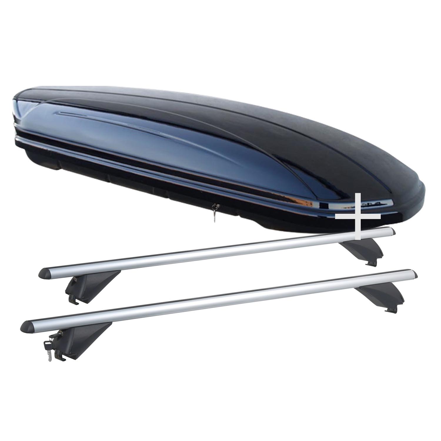 Dachbox 320 Liter abschließbar schwarz VDPMAA320 + Dachträger kompatibel mit Volkswagen Golf VIII Variant 5 Türer ab 2020