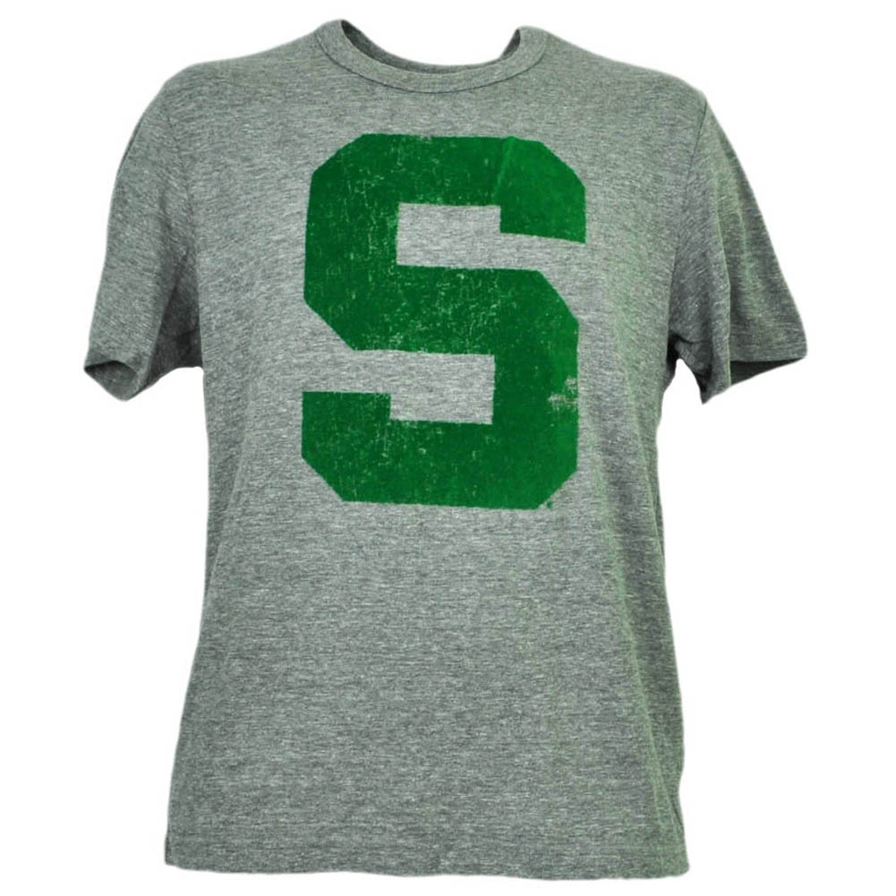 NCAA Michigan State Spartans Felt Logo Tshirt Tee Short Sleeve Mens Gray Sports