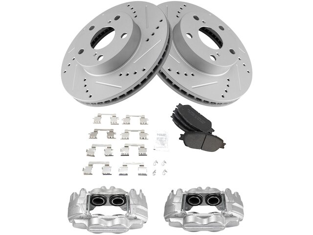 Package Contents: (2) Front Performance Brake Rotors; (2) Front Brake Calipers; (1) Front Semi-Metallic Brake Pad Set with Contact Point Grease & Hardware