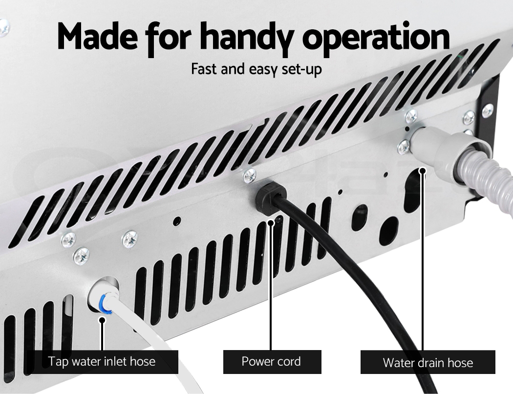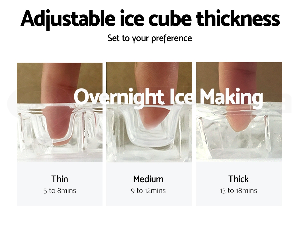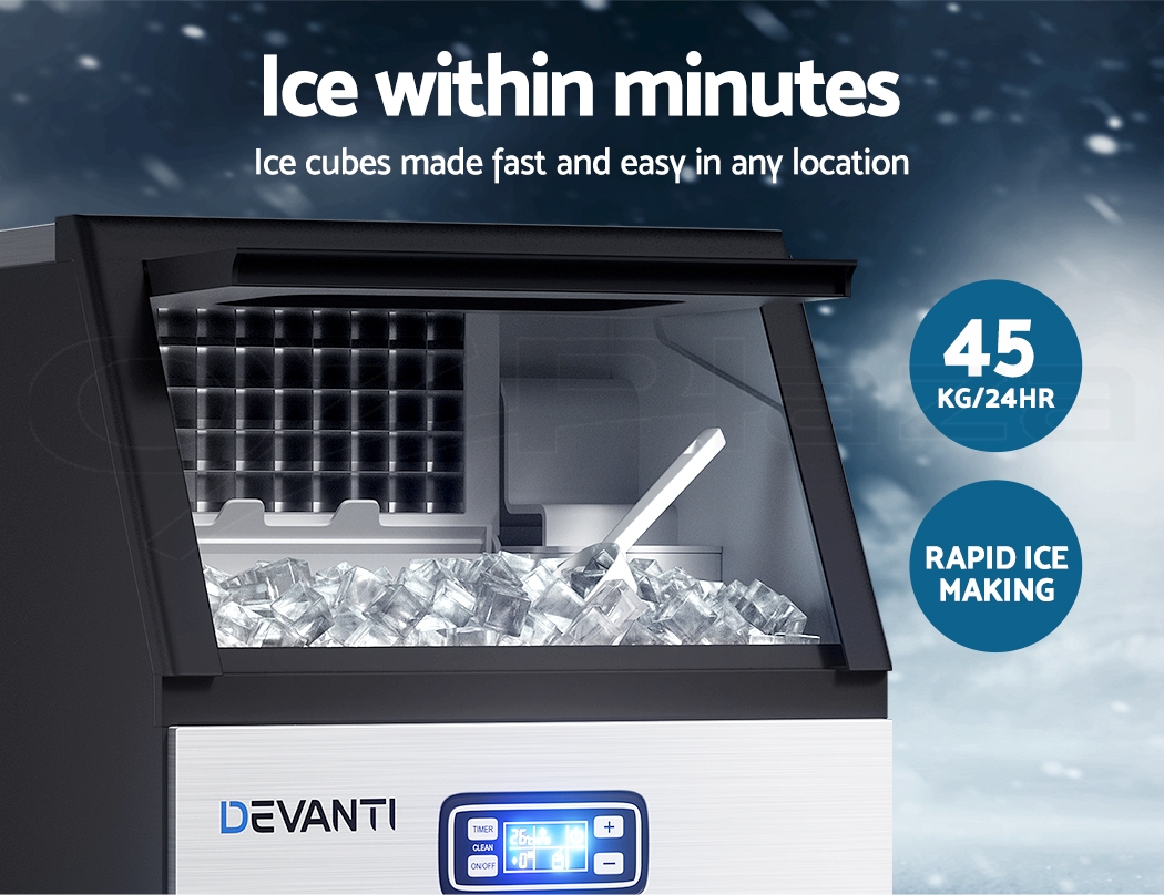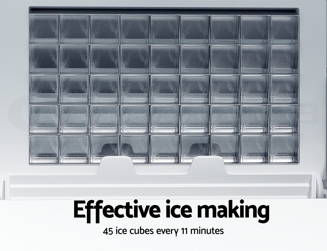 Introducing our Commercial Ice Maker, an essential asset for your business. With the ability to produce 45 ice cubes in just 11-20 minutes, and a choice of 4 levels of ice cube thickness, it meets the demands of any establishment. The dual safety protection ensures uninterrupted service, automatically halting production upon water shortage or when the ice bin is full, while the self-cleaning system maintains hygiene standards. Coupled with Freon-free refrigerant and enhanced heat dissipation for energy savings, this compact unit seamlessly integrates into any commercial kitchen or bar setting, providing reliable ice supply for your guests.